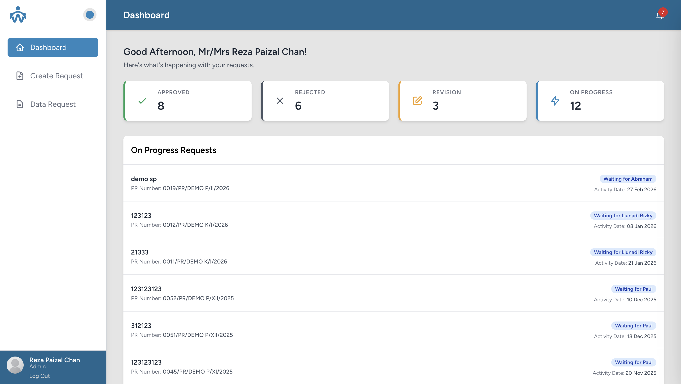 Purchase Request system for managing internal procurement of goods and services, featuring multi-level approval workflows, role-based access control, management of cost centers, users, and permissions, along with email and in-app notifications, and more features.